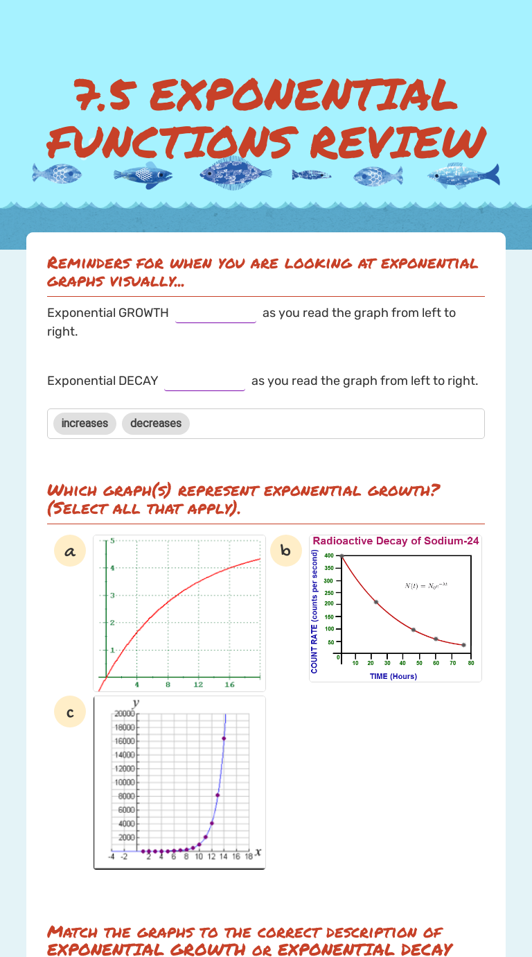 This printable pdf worksheet can be used by students in 5th, 6th, 7th. The growth rate function can be represented as f(x). Math explained in easy language, plus puzzles, games, quizzes, worksheets and a forum. Exponential functions are closely related to geometric sequences. These functions are solutions of a.