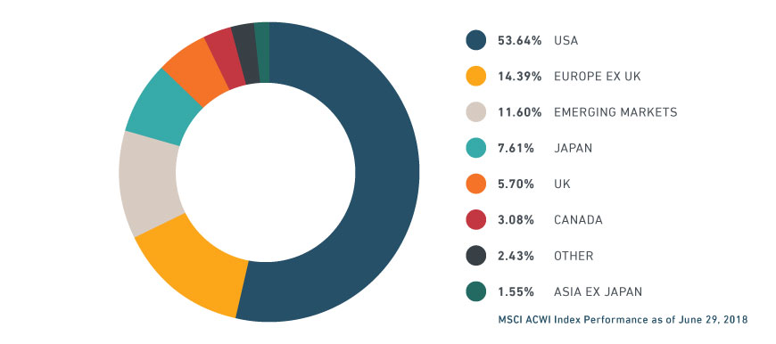 The msci world is an international equity index, which tracks stocks from 23 developed countries.